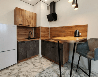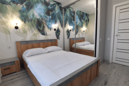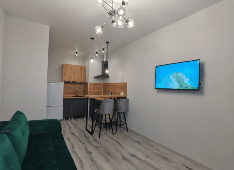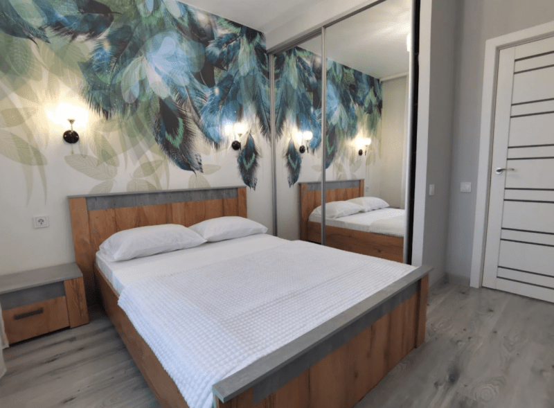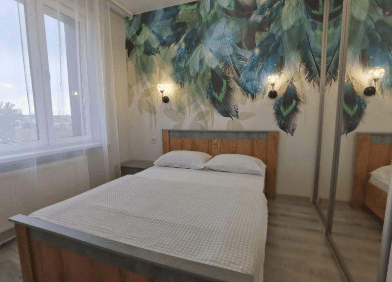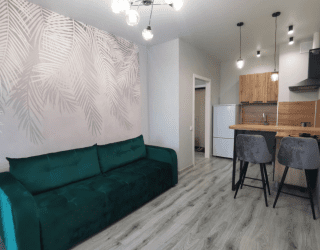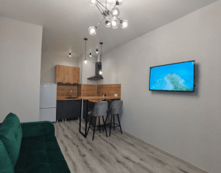 К услугам гостей полностью оборудованные апартаменты: диван, двуспальная кровать, бесплатный Wi‑Fi, телевизор, кухня с современной бытовой техникой (плита, микроволновая печь, холодильник, чайник), стиральная машина, фен и утюг. На территории предоставляются общая парковка и детская игровая площадка.
